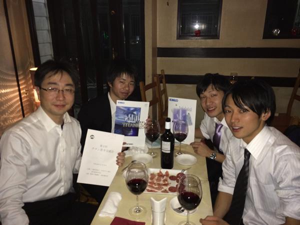 8月は研究室の夏休み。長期休暇前に研究室懇親会を開きました。4~7月までの間で一番頑張ってきた学生さんを研究室皆で投票によって選びました。その結果、M2の宮本君が選ばれました。おめでとう!これからさらに頑張ってください。夏休みといえども、学会参加組は夏休み関係なく研究を継続しています。2014年7月18日