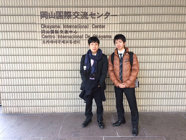 M1 十亀宏明 君、M1 真鍋慶祐 君が岡山国際交流センターにて開催されました第30回若手フォーラムにて研究講演を行いました。十亀君の講演題目は、「Ti-3~5at%Mo合金における準安定相生成に及ぼすAl添加効果」、真鍋君の講演題目は「Ti-Mo-Fe合金の機械的特性に及ぼす内部組織変化」。2014年11月17日~18日