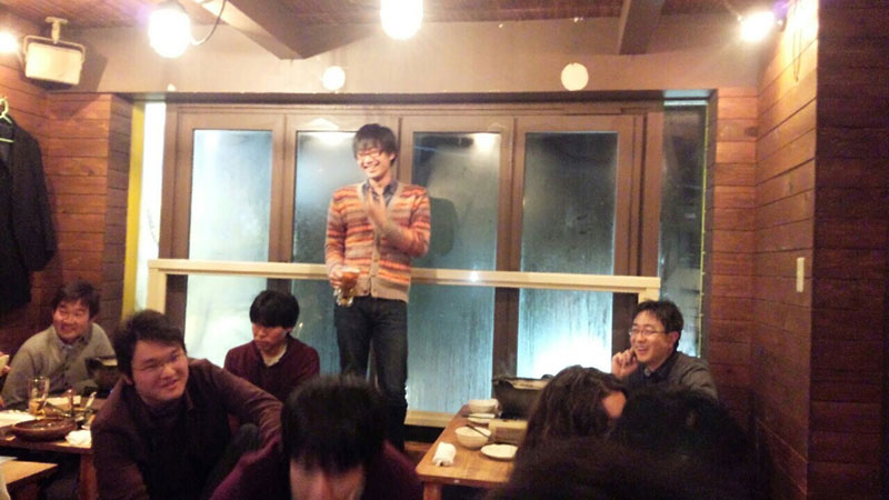 本日は、研究室の大掃除を行いました。学生全員のおかげで研究室がとってもきれいになりました。その後は、忘年会(幹事はM1十亀君。場所は「ありゃ」。もつ鍋がメイン。)を開きました。楽しい忘年会となりました。また、8~12月までの間で一番頑張ってきた学生さんを研究室皆で投票によって選びました。その結果、M2の和田君が選ばれました。この数か月、細胞培養実験を一生懸命頑張っていたことが皆に認められたのでしょう。おめでとう!修士論文をしっかりまとめてください。 来年も良いことがたくさんありますように!1年お疲れ様~。2014年12月10日